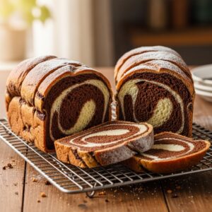 A pretty swirl of chocolate inside a soft loaf, combining the flavors of vanilla and cocoa. It looks impressive but is easily made.