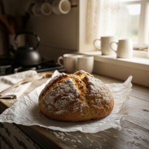 Instructions: Mix dry ingredients → add buttermilk → shape a round → score top → bake at 425°F (218°C) for 40 minutes.