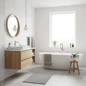 Add cozy elements like soft rugs or warm lighting to make the bathroom feel inviting while maintaining its minimalist roots.