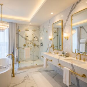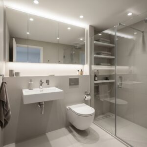 Features like smart mirrors with LED lighting, touchless faucets, and programmable showers add convenience and efficiency.