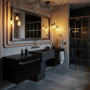 Pair these with Edison bulb lighting and steel-framed mirrors for an edgy aesthetic.