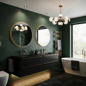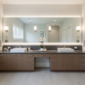 Perfect for shared bathrooms, a double vanity provides both style and convenience.