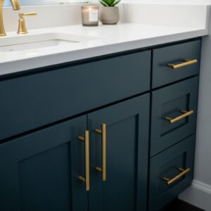 If replacing your vanity isn’t in the budget, updating the cabinet hardware is a great alternative.