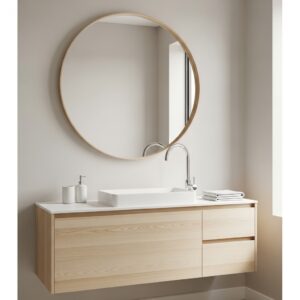 Round mirrors or those with decorative frames can instantly elevate the space and make it feel more custom-designed.