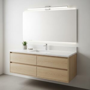 Consider adding LED vanity lights or wall sconces to create a bright and inviting space.