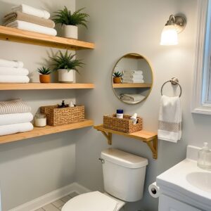 This not only adds storage but also gives you a chance to personalize your bathroom with plants, candles, or baskets.