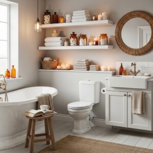Display neatly folded towels, candles, or stylish containers to create a curated look.