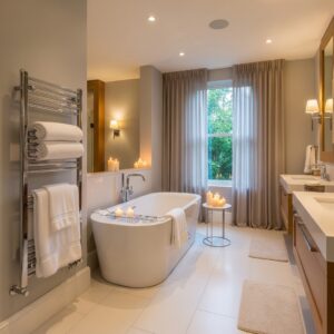 Heated floors, towel warmers, aromatherapy diffusers, or even a small bench in the shower can enhance comfort and luxury.