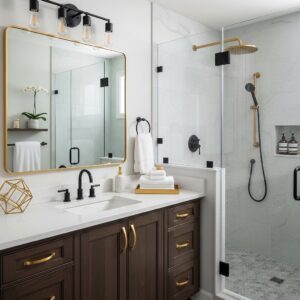 Frameless glass doors, sleek tile designs, and built-in niches for storage can make the shower both functional and visually appealing.
