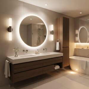 LED mirrors or backlit mirrors add a contemporary feel while providing excellent visibility for daily routines.
