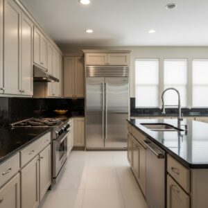 Beige cabinets are timeless, warm, and incredibly versatile—but when paired with black countertops, they become bold and modern.