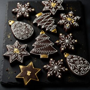 These rich cocoa cookies give a chocolate version of classic sugar cutouts. They look stunning when decorated with white or gold icing.