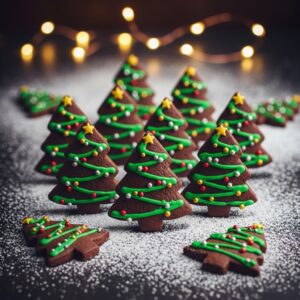 A chocolate-mint dough cut into tree shapes makes rich, cool, festive cookies.