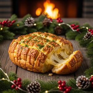 Take an inexpensive loaf of bread and turn it into a holiday showpiece with garlic butter and melted cheese.
