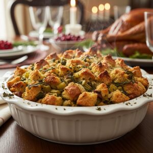 Use stale bread, onions, celery, and broth to create a moist, flavorful stuffing.