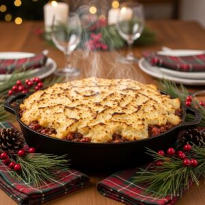 Make it festive by adding herbs like rosemary and thyme, and top it with creamy mashed potatoes that crisp beautifully in the oven.