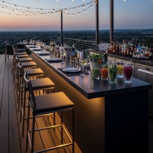 Install a bar counter along the railing or edge of your deck and pair it with bar stools.