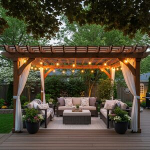 If your deck includes a pergola, use it as the anchor for your furniture layout.
