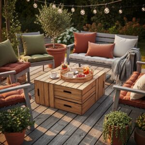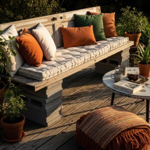A cozy, functional deck doesn’t require expensive furniture — just creativity, resourcefulness, and thoughtful arrangement.