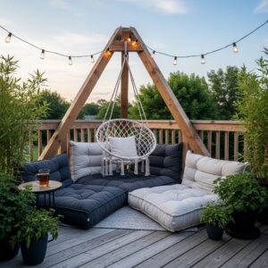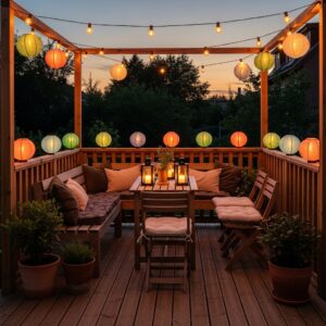 This combination turns your deck into a cozy, atmospheric lounge perfect for summer nights.