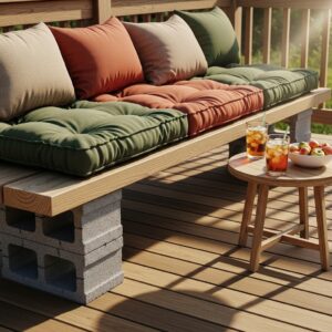 This industrial‑chic solution uses inexpensive cinder blocks and untreated lumber to create sturdy bench seating.