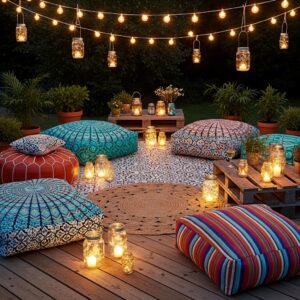 4. Mason Jar Lanterns and Floor Seating