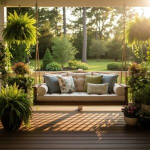 A polywood porch swing or daybed adds a unique and relaxing element to your deck.