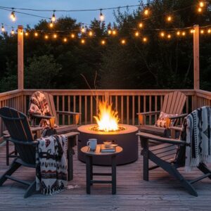 Add blankets and outdoor cushions to enhance comfort, and you’ll have a welcoming space for cool evenings and late-night conversations.