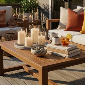 Polywood coffee tables are durable and stylish, offering a place to set drinks, snacks, or decor.