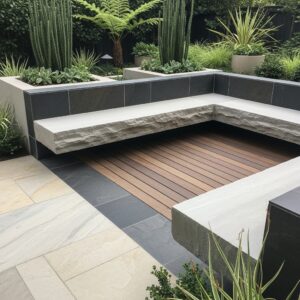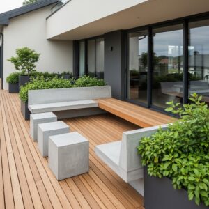 Concrete benches or stools offer a bold, modern aesthetic while being incredibly durable.
