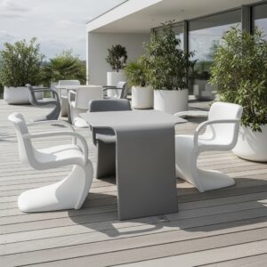 Modern plastic furniture has evolved into stylish, durable, and ergonomic designs that don’t require cushions.