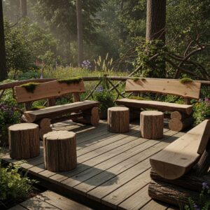 These pieces highlight the raw beauty of wood and blend perfectly with outdoor surroundings.