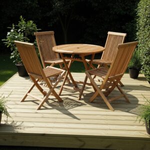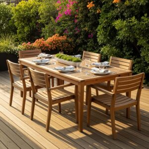 Opt for hardwoods like teak, cedar, or acacia, which naturally resist weather and insects.