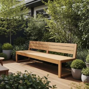 The clean lines of a wooden bench add a minimalist charm, and you can enhance comfort by slightly angling the backrest or choosing ergonomically designed slats.