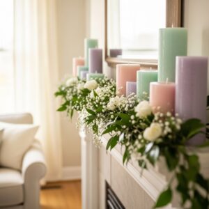 Choose pillar candles in pastel tones such as blush, soft yellow, mint, or lavender.