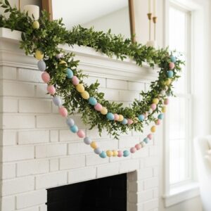 Combine a soft greenery garland as the base with a second layer of pastel egg garlands or felt bunny garlands.