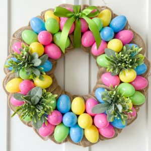 Whether you love pastel farmhouse decor, bold modern designs, or kid-friendly crafts, plastic eggs make it easy to create eye-catching Easter wreaths that last for years.