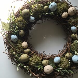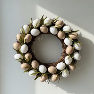 Arrange them symmetrically around the wreath for an elegant Easter display.