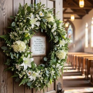 Incorporating a Bible verse such as John 11:25 or Matthew 28:6 makes the wreath spiritually rich and meaningful.