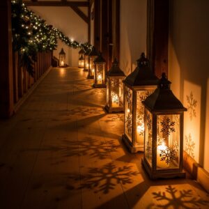 Place lanterns along the hallway floor or console tables with snowflake cutouts that cast patterned shadows.
