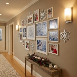 You can display family Christmas photos, winter landscapes, or even DIY snowflake artwork.