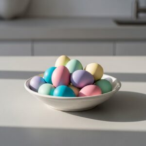 Choose eggs with matte finishes or subtle patterns rather than bright, glossy colors.