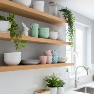 If you have open shelving, refresh it with a few Easter-themed accents.