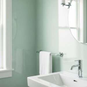 While matte finishes are trendy, a high-gloss or semi-gloss paint in a light shade (like soft cream or pale blue) acts as a subtle mirror.