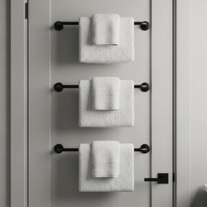 Instead of a bulky rack, install a series of sleek, horizontal towel bars or a high-quality “pocket” organizer.