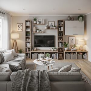Choosing multi-functional furniture like storage ottomans, sleeper sofas, or coffee tables with hidden compartments allows you to combine seating, storage, and surface space efficiently.