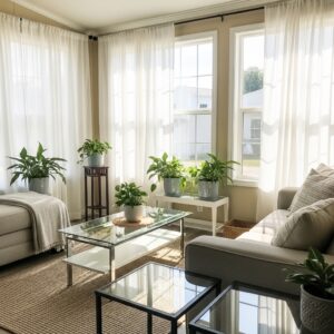 Adding reflective surfaces, like glass tables or metallic accents, can further amplify the natural light and create a cheerful, inviting atmosphere.