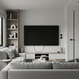 Keep your living room sleek and functional by integrating technology discreetly.