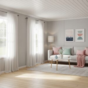 Painting the ceiling a lighter shade than the walls adds a sense of height, while subtle accents in pastel tones can create warmth without overwhelming the space.