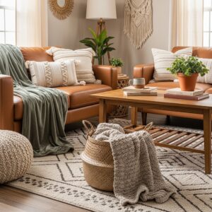 For example, a plush throw on a sleek leather sofa or a woven basket near a minimalist coffee table adds tactile interest without taking up additional space.